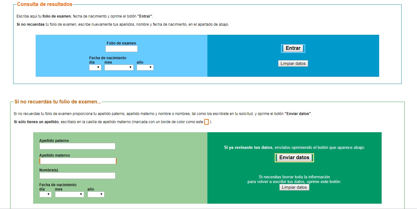 - En caso de que hayas olvidado tu folio, también hay una opción donde podrás ver tus resultados.