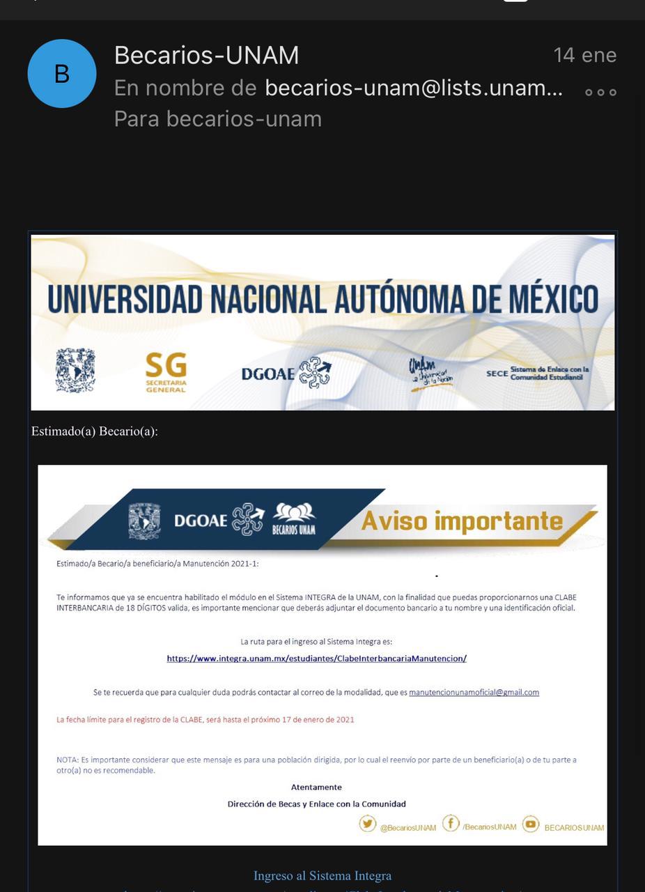 MILENIO trató de contactar al encargado del Departamento de las Becas de la UNAM, sin embargo, hasta la publicación de esta edición no se obtuvo respuesta alguna.
