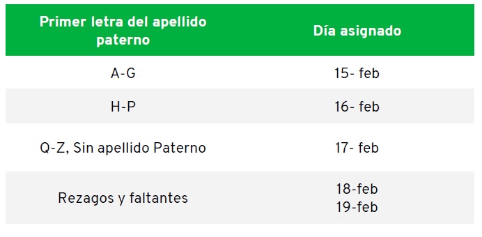 Cada adulto mayor tendrá asignada una unidad vacunadora de acuerdo a su colonia, barrio o pueblo y un día de vacunación de acuerdo a la primera letra de su apellido paterno.