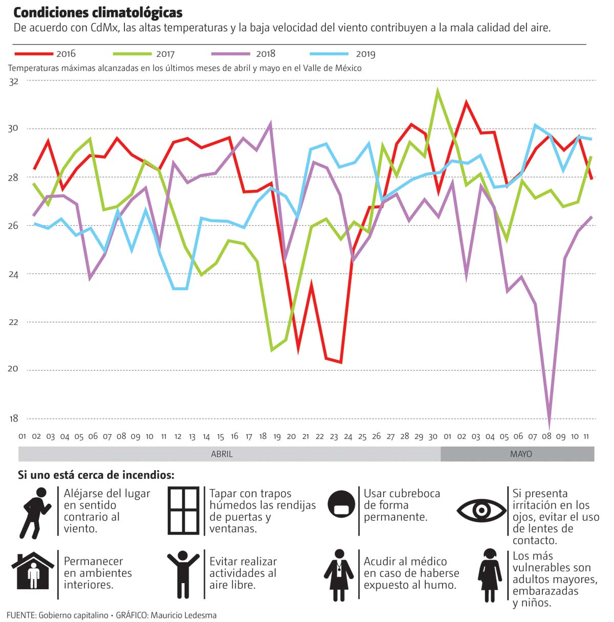 Además, recomendó a la población tomar precauciones, porque el humo producido por incendios, por la combustión de vegetación y otros materiales irrita las vías respiratorias y afecta las mucosas.