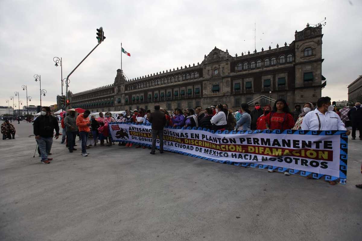 Artesanos de la comunidad indígena triqui del estado de Oaxaca, radicados en la Ciudad de México, permanecen en plantón en la avenida José María Pino Suárez, frente a la Suprema Corte de Justicia hasta Palacio Nacional, donde apartan lugares con todo tipo de objetos con la finalidad de tener espacios para comercializar sus productos y evitar que la Policía se acerque para retirarlos.