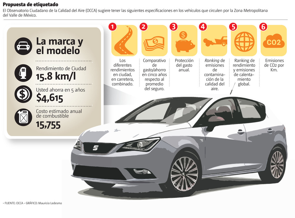De acuerdo con la propuesta, el etiquetado contendrá información sobre los diferentes rendimientos de los vehículos en ciudad o carretera y un comparativo en el gasto y ahorro en un periodo de cinco años, comparado con el rendimiento promedio del segmento del vehículo.