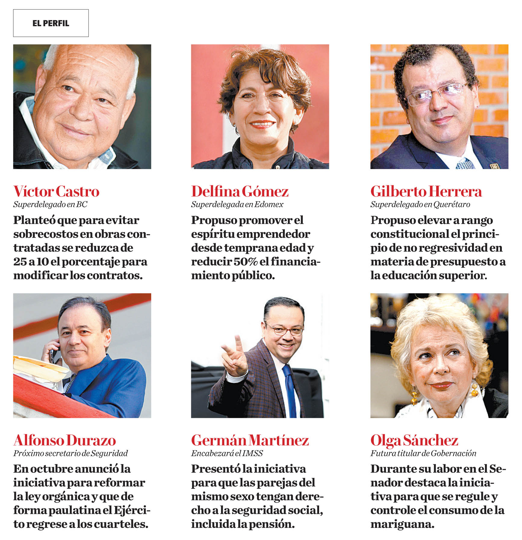 Los morenistas Delfina Gómez, Jaime Bonilla, Gabriel García, Gilberto Herrera y Víctor Manuel Castro son los cinco senadores que preparan su licencia para incorporarse como superdelegados en la administración del presidente electo, Andrés Manuel López Obrador.