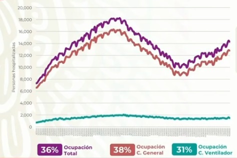 Alomía informó que al corte del 25 de noviembre había 14 mil 280 camas ocupadas. El porcentaje de ocupación de camas para atención general es del 38 por ciento y en las camas con ventilador es del 31 por ciento.