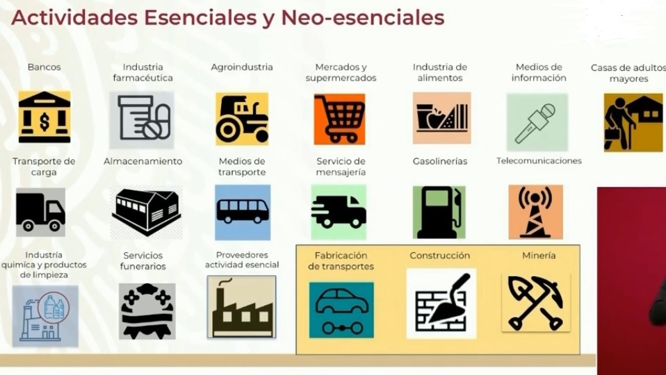 Zoe Robledo Aburto, director general del IMSS informó las acciones llevadas a cabo para esta 'nueva normalidad' enfocadas a las empresas esenciales y neo-esenciales, tales como los protocolos a seguir en los bancos, tiendas de autoservicio y centros de trabajo; como lo son: implementación de la sana distancia, separación de las personas mediante el uso de plásticos y evitar las aglomeraciones en zonas comunes.