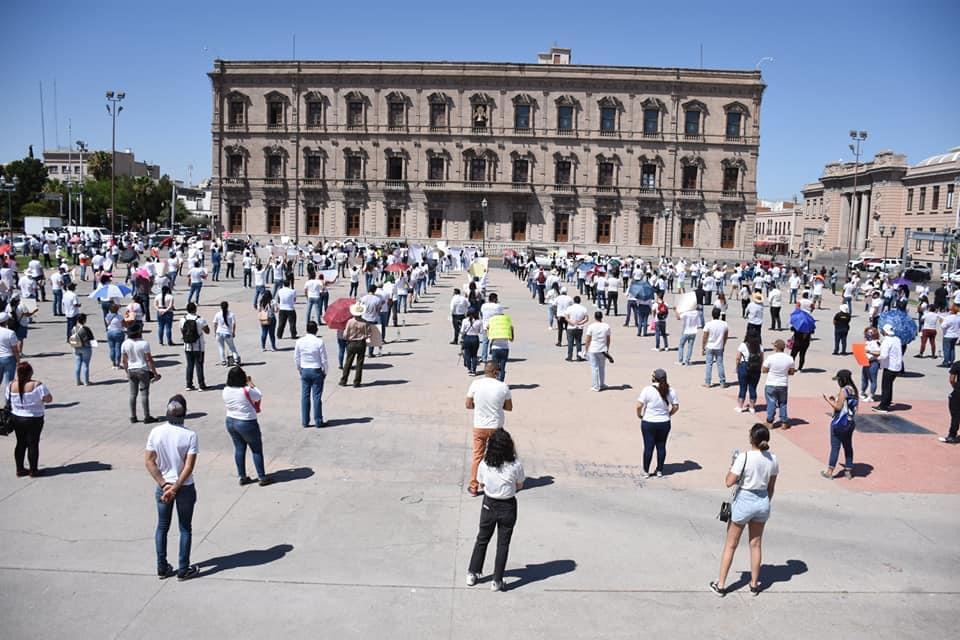 Dueños y trabajadores de bares y restaurantes en Chihuahua se manifestaron con sana distancia frente a Palacio de Gobierno para exigir la inmediata reapertura de los establecimientos ante la pandemia de coronavirus.