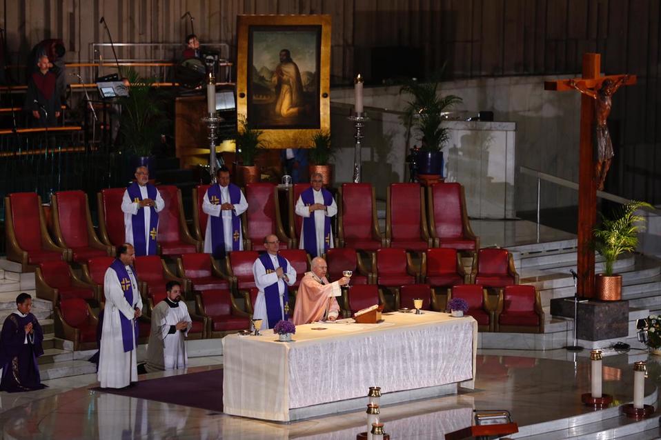 En una misa celebrada a puerta cerrada en la Basílica de Guadalupe, el arzobispo primado de México, Carlos Aguiar Retes, llamó a los feligreses "buscar a Jesús" para saber qué hacer ante la pandemia de Covid-19.