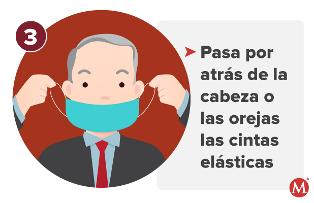 Algunos cubrebocas tienen una especie de barra pequeña de metal que permite moldear el cubrebocas para que se acomode en el arco de la nariz, eso ayudará a que no se deslice. Además pasa el resorte por atrás de la cabeza o las orejas para que quede firme.