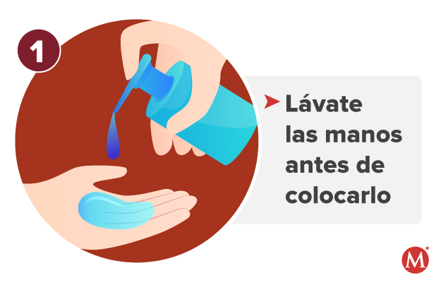 Antes de colocarte el cubrebocas debes lavarte las manos con agua y jabón, para evitar infectarlo.