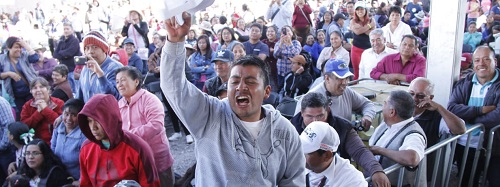 “Hoy el presidente de la República viene a reconocer una vez más el trabajo de los adultos mayores: el trabajo de muchos años, de mujeres y hombres que se han entregado a esta tierra mexiquense, que se han entregado al trabajo del campo, porque en el norte del estado somos orgullosamente trabajadores del campo y que hoy viene a reconocerlos”.