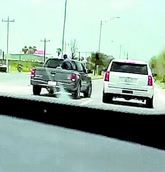 Después, la pick-up avanza por la carretera dejando libre a la de Delgado. "Así está la situación en Tamaulipas, es una camioneta con armas largas, fuimos detenidos, nos apuntaron a la camioneta con armas largas, estamos bien", expresó Delgado en su video.
