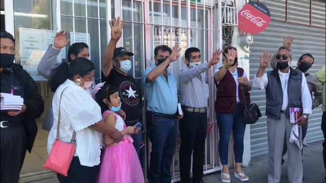 Militantes de Morena en Aguascalientes tomaron las instalaciones del partido en contra de la imposición de las candidaturas; colocaron un candado en la puerta de las instalaciones ubicadas en Avenida López Mateos.