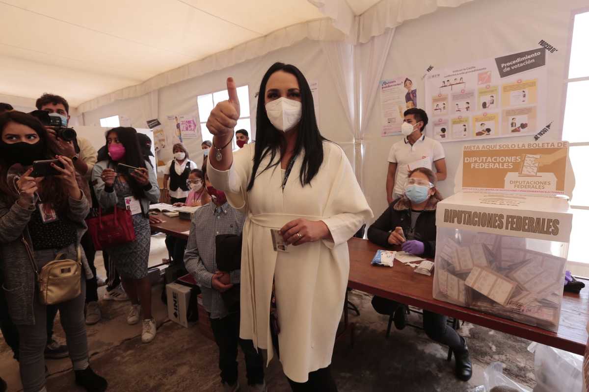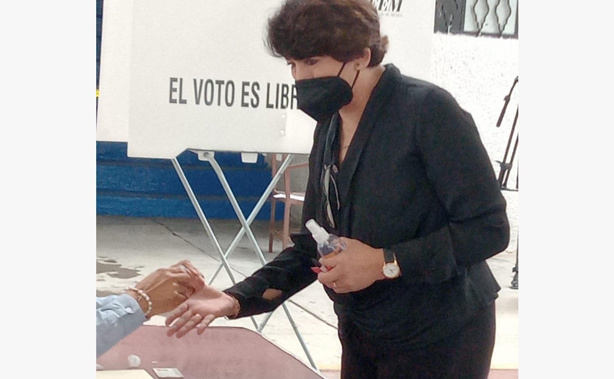 La candidata de la coalición "Juntos Haremos Historia" en el municipio de Atizapán de Zaragoza, acudió a las 10 de la mañana acudió a la casilla ubicada en el kiosco de San mateo Tecolopan para emitir su voto.