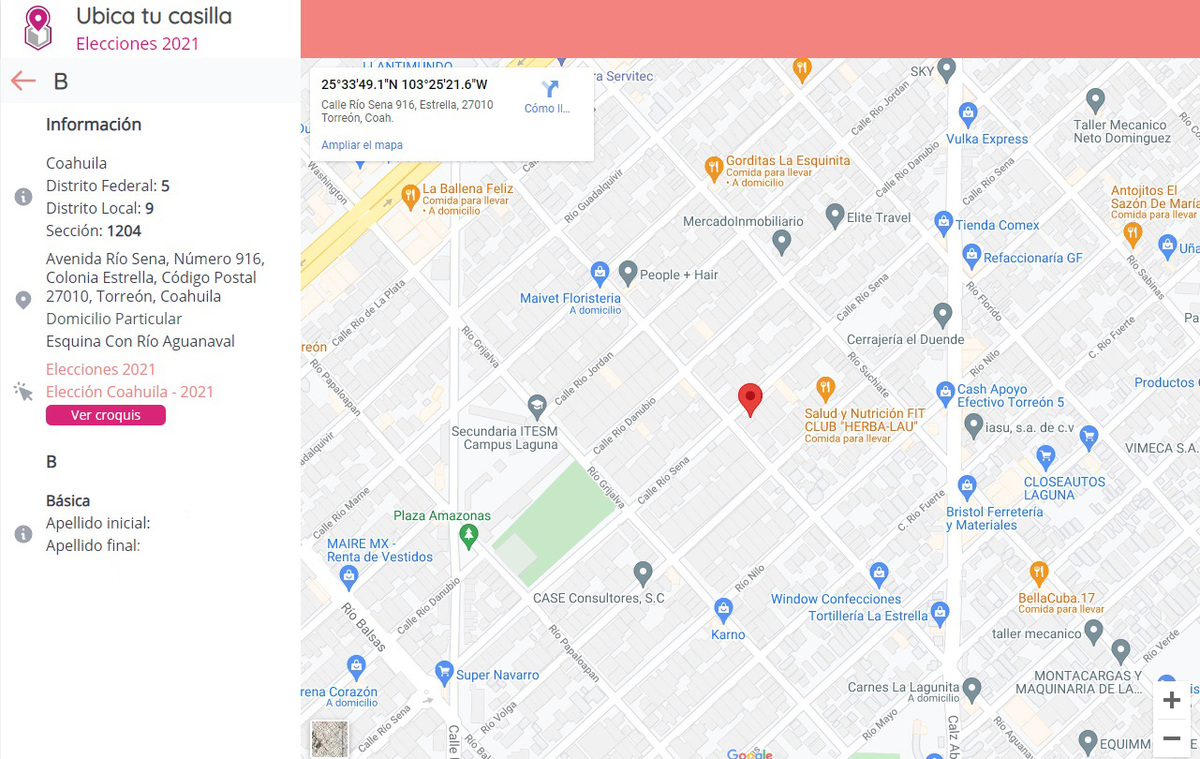 3. Da clic en buscar y te mostrará dónde se ubica tu casilla.
