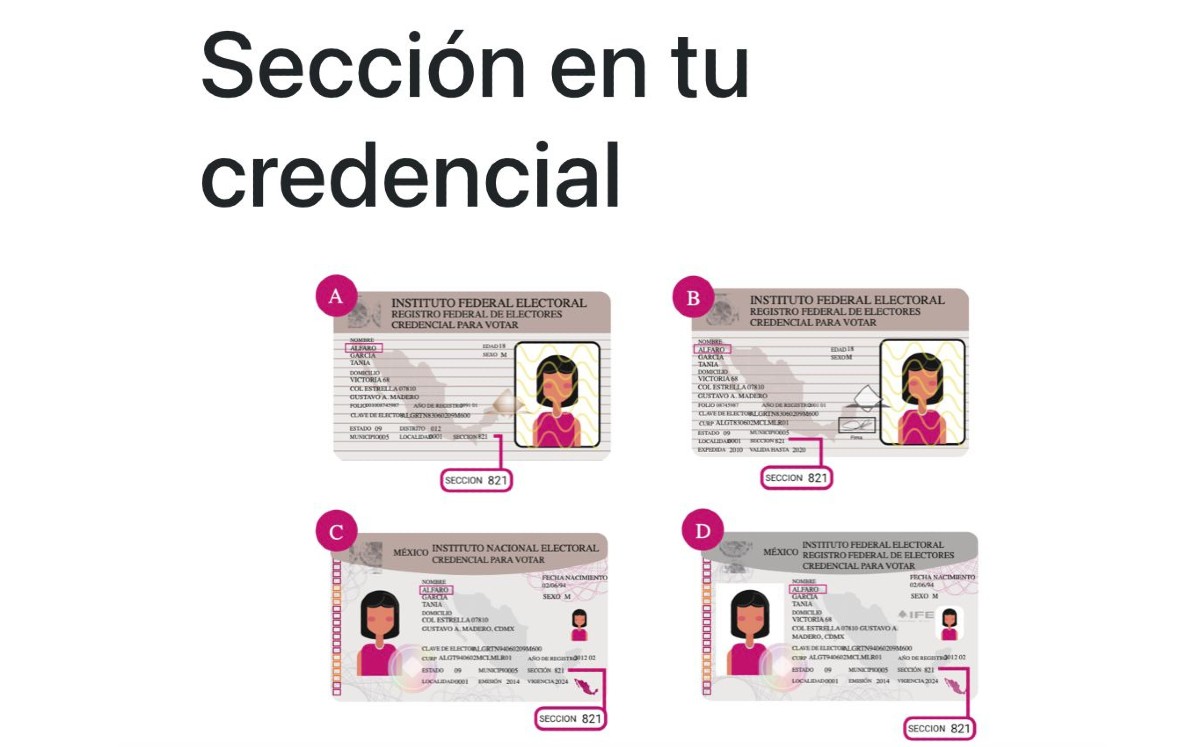 Si no conoces tu sección la podrás identificar en tu credencial del INE, como te lo mostramos en la siguiente imagen.