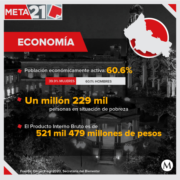 El Producto Interno Bruto del estado es de 521 mil 479 millones de pesos, según datos del Inegi; mientras que la deuda pública al corte del 31 de diciembre de 2020 es de 3 mil 742 millones 607 mil pesos, detalla la Secretaría de Finanzas estatal.