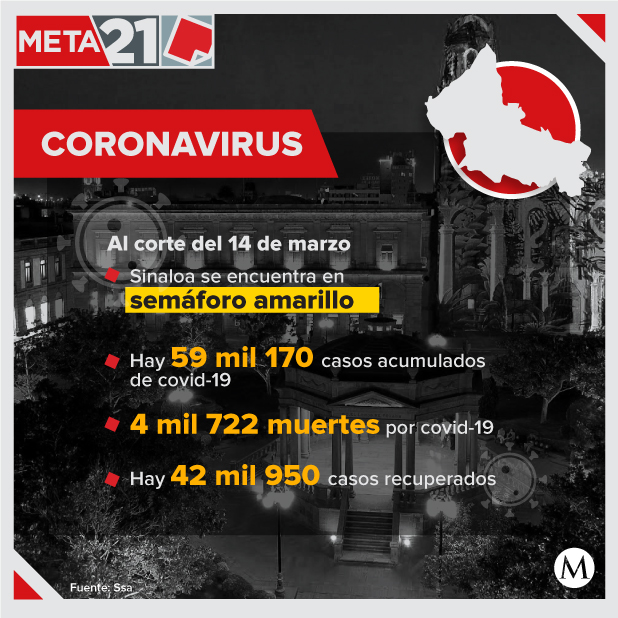 Al corte del 14 de marzo se registraron un total de 59 mil 170 contagios de covid-19 acumulados y 818 casos activos estimados. Actualmente San Luis Potosí se encuentra en color amarillo en el semáforo epidemiológico.