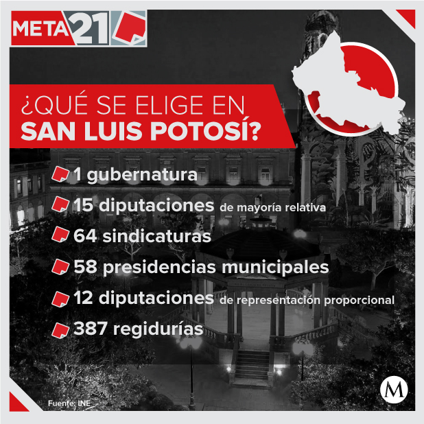 Las y los potosinos definirán en la contienda electoral qué rumbo tomará la política durante los próximos años. Elegirán a la próxima o próximo gobernador, así como 15 diputaciones de mayoría relativa, 64 sindicaturas, 58 presidencias municipales, 12 diputaciones de representación proporcional y 387 regidurías.