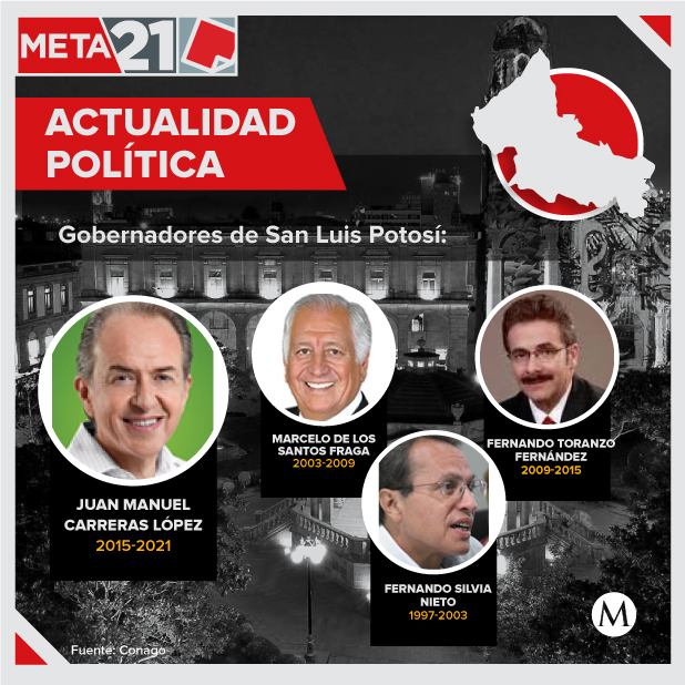 Desde su fundación en 1824, San Luis Potosí, uno de los primeros estados de México, ha tenido 44 gobernadores constitucionales. Todos, a excepción de uno, han emergido de las filas del Partido Revolucionario Institucional (PRI), o sus predecesores, el Partido Nacional Revolucionario y el Partido de la Revolución Mexicana. La única alternancia en la gubernatura se dio en 2003 con el triunfo de Jesús Marcelo de los Santos Fraga, del Partido Acción Nacional.