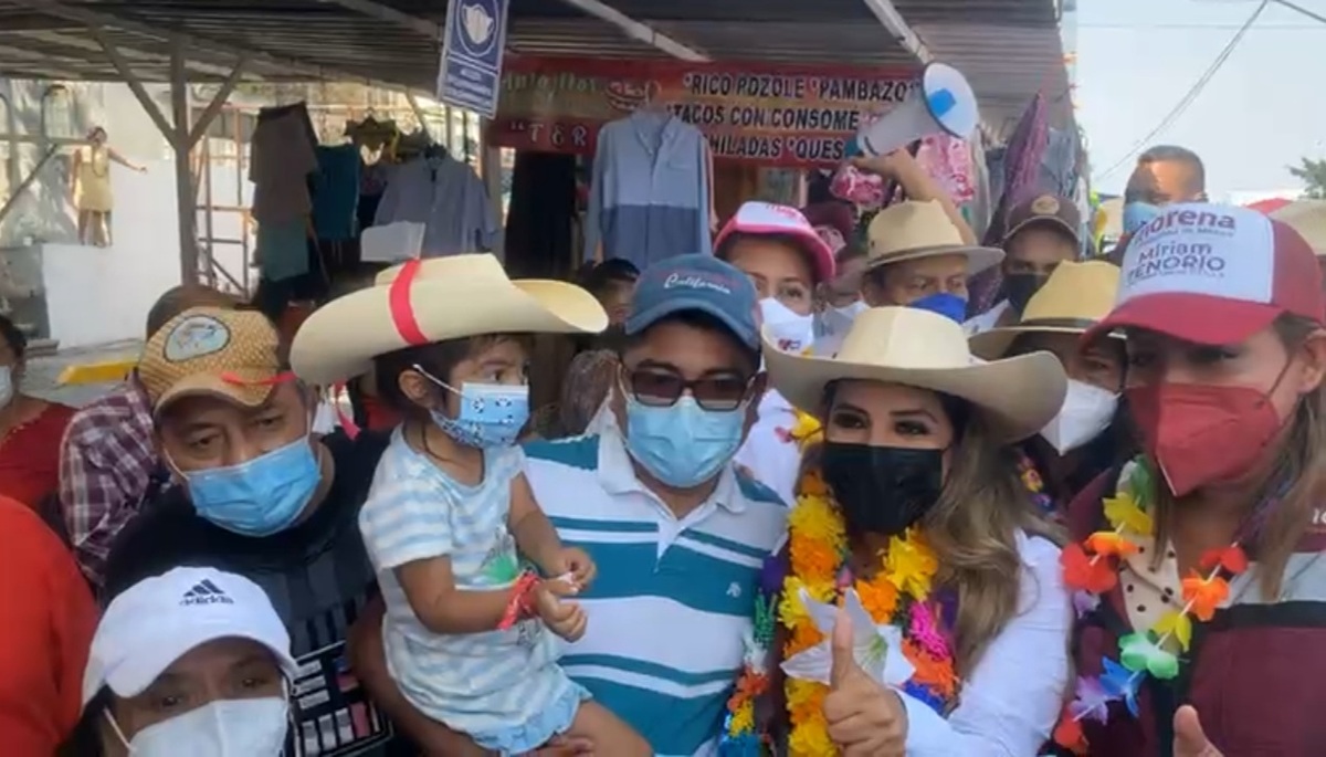 Las candidatas de Morena a los gobiernos de Acapulco y Guerrero, Abelina López Rodríguez y Evelyn Salgado, respectivamente, realizaron un recorrido en dos conjuntos habitacionales en Luis Donaldo Colosio e Infonavit El Coloso, para pedir el voto de los porteños.