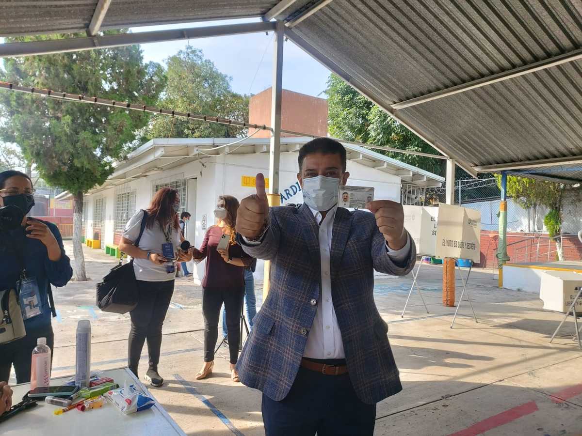El candidato a la presidencia municipal de San Pedro Tlaquepaque por Morena, Alberto Maldonado está ejerciendo su voto en la casilla del Castillo del Caballero moderno en el Fraccionamiento Revolución.
