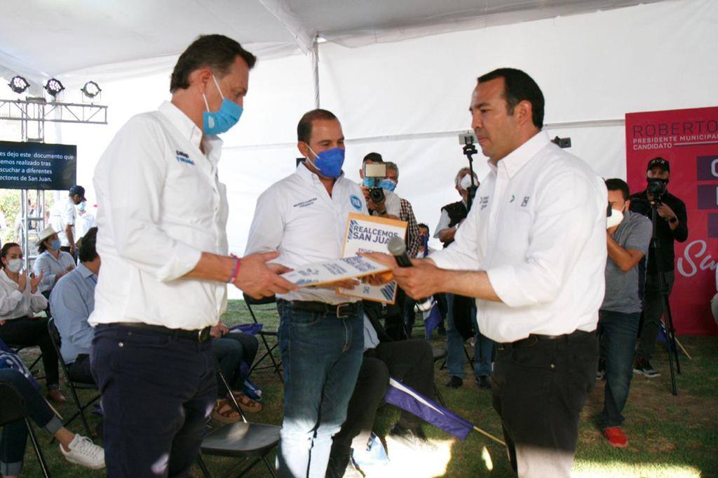 Acompañado del presidente nacional del PAN, Marko Cortés y de Mauricio Kuri Vidal, candidato a la gubernatura de Querétaro, Roberto Cabrera, se pronunció por implementar un cambio innovador para generar más empleos y bien pagados, más industria, más apoyo a las mujeres, seguridad desde la casa y poner adelante al campo y la educación.