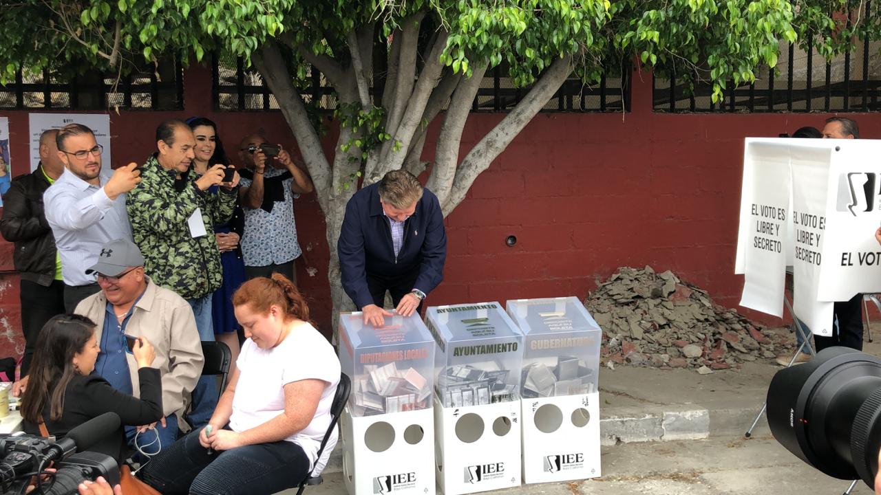 Acompañado de su familia, el panista emitió sufragio en la Universidad Xochicalco, en Mexicali, en donde declaró que espera una jornada limpia.