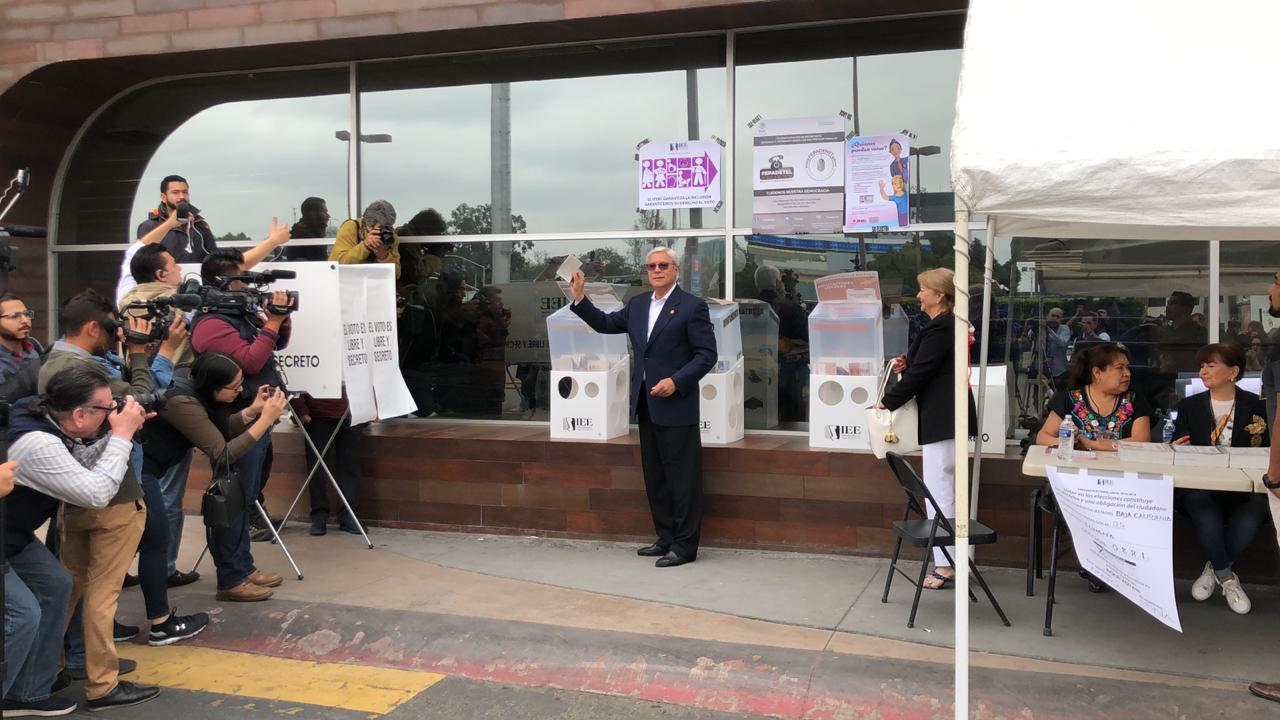 Jaime Bonilla, candidato de Morena a la gubernatura, acudió a su centro de votación. (Foto y video de Israel Navarro)