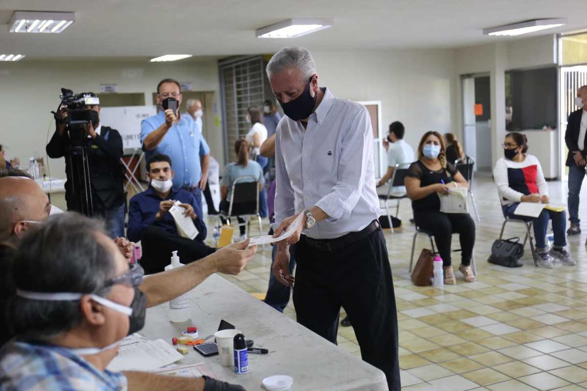 Acompañado por el dirigente nacional del Revolucionario Institucional, el exalcalde y candidato al distrito 9, Eduardo Olmos Castro, emitió su voto en la casilla ubicada en calle 33 y avenida Bravo.