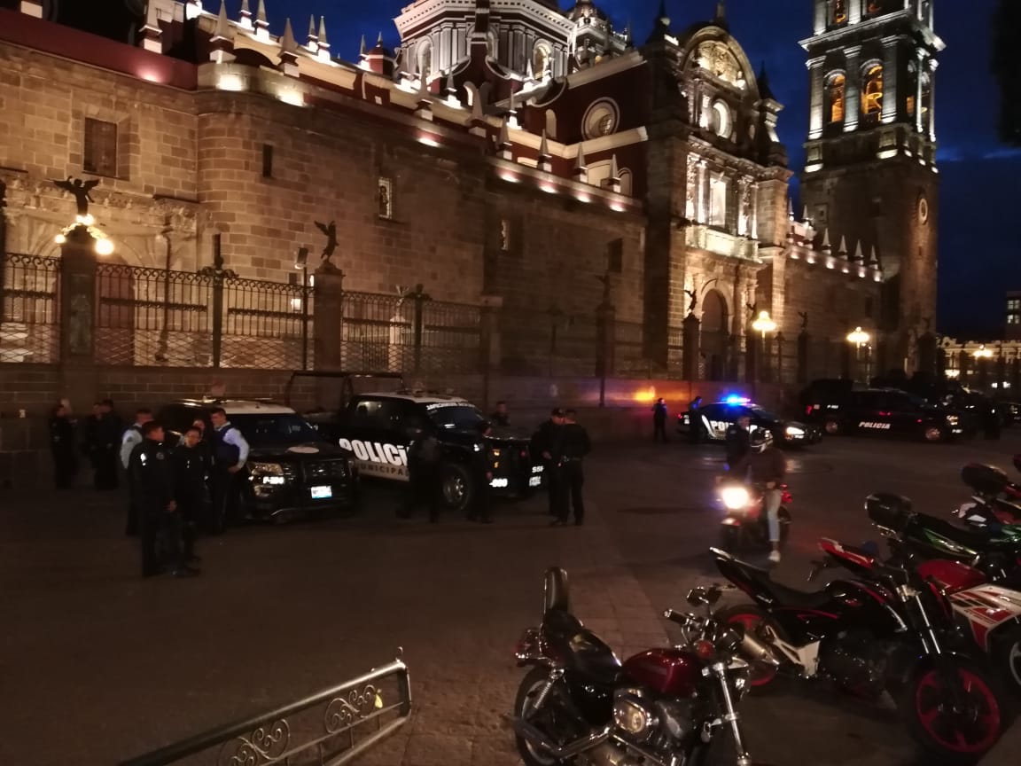 Unidades de tránsito y de la Policía Municipal están en el Zócalo, en espera de un "gran movimiento de personas" para celebrar el triunfo de Miguel Barbosa como gobernador.