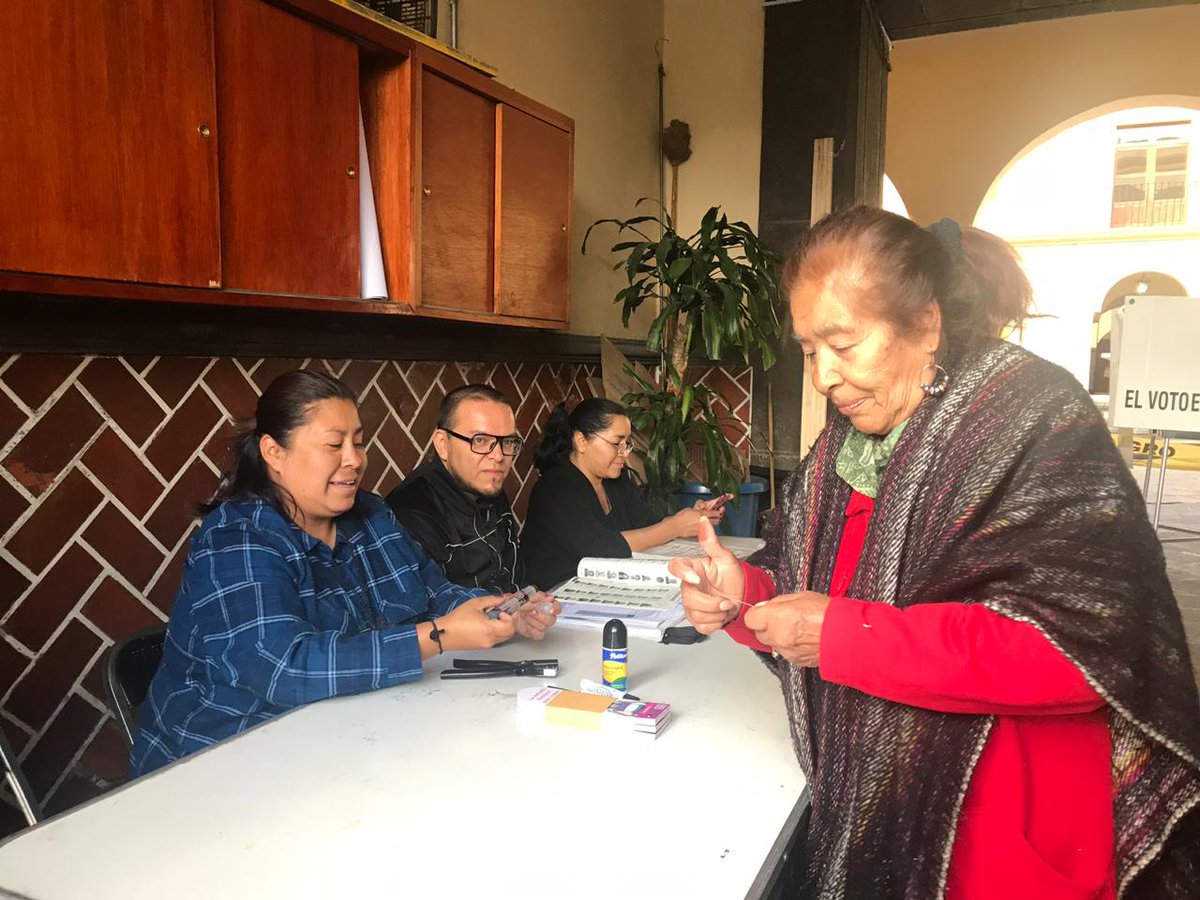 Desde temprano, los poblanos salieron a ejercer su derecho al voto; muestra de ellos es Guillermina, quien fue la primera votante en la casilla del Distrito Electoral 12.