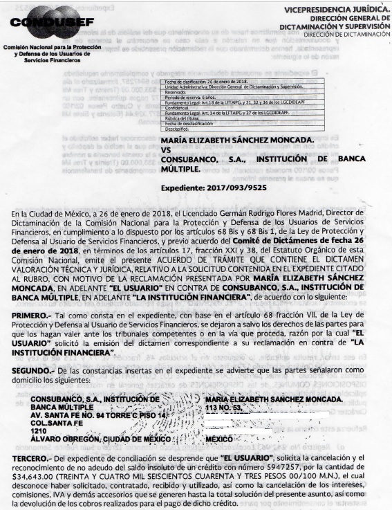 Por un año, María ha estado pagando tres créditos y su quincena pasó de 4 mil a solamente mil pesos a causa de los descuentos. Actualmente las reclamaciones por estos hechos constan en los expedientes 2017/093/9525, 2017/093/9164 y 2017/093/9165 de la Comisión Nacional para la Protección y Defensa de los Usuarios de Servicios Financieros (Condusef).