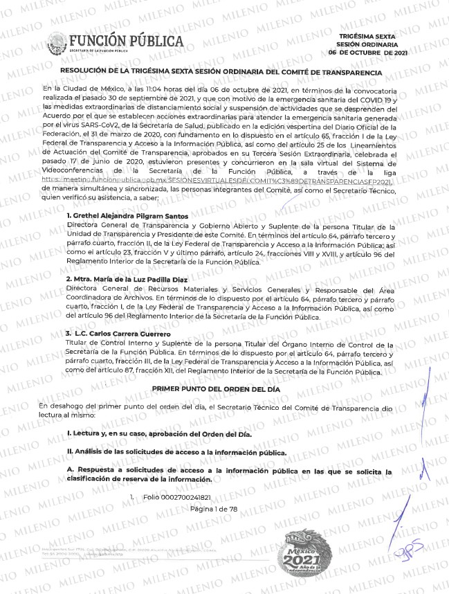 Pero no sólo no han terminado de esclarecer los hechos, sino que el pasado 6 de octubre de este año un Comité de Transparencia interno decidió clasificar como reservada un año toda la información referente a la investigación contra los funcionarios de la SFP que se lo robaron.