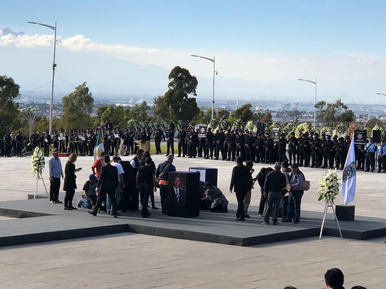 El funeral se realizará en la Plaza de la Victoria del Parque Los Fuertes. Desde temprano, personal de Protección Civil estatal hizo labores de limpieza y delimitó el área para el homenaje luctuoso.