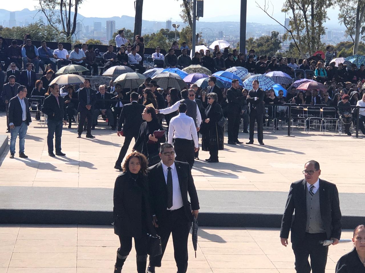 Los presentes gritan "Justicia" mientras la primera guardia de honor se instala; hay abucheos en contra de Olga Sánchez Cordero.
