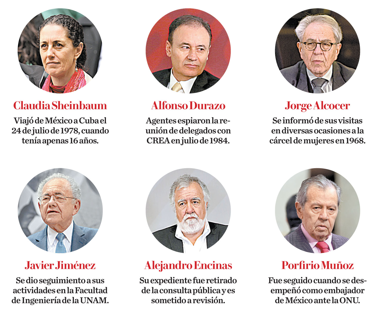 Media docena del primer círculo presidencial, entre secretarios de Estado, el presidente de la Cámara de Diputados e incluso la jefa de Gobierno de CdMx, Claudia Sheinbaum, fueron vigilados en algún momento por la extinta Dirección Federal de Seguridad.
