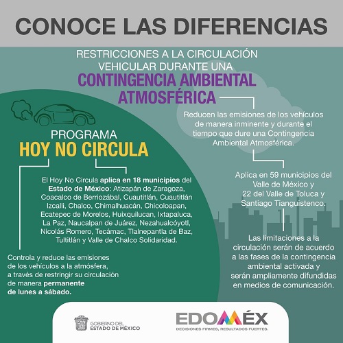 La contingencia también obligaría a aplicar la restricción vehicular del Programa de Contingencias en la Zona Metropolitana del Valle de Toluca y en la Zona Metropolitana de Santiago Tianguistenco.