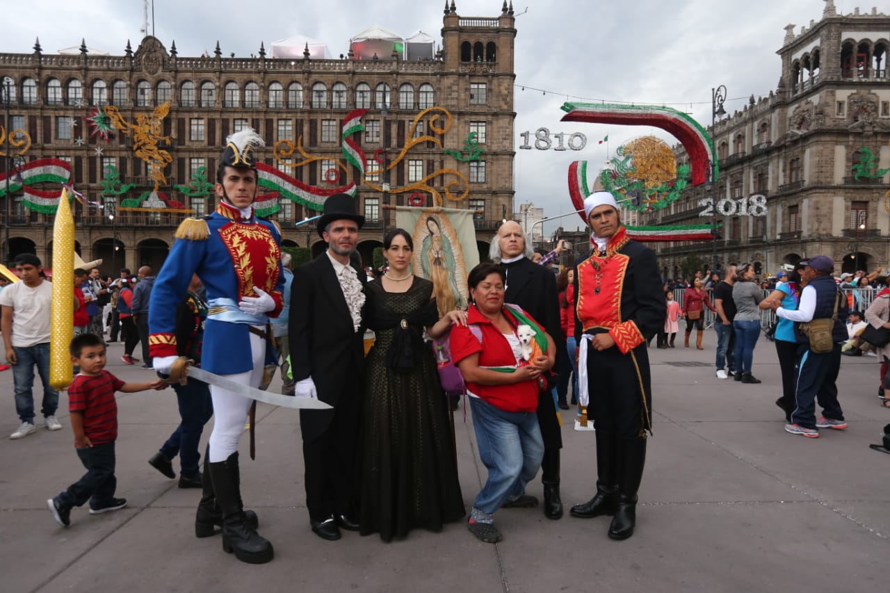 Grupos de familias y amigos ya abarrotan la plancha del Zócalo capitalino, adonde algunos han llegado caracterizados como los héroes de la Independencia.