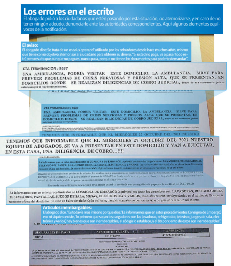 Aunque en el documento exista la amenaza de embargo, Flores Treviño aclaró que los cobradores no tienen facultades legales para hacerlo.