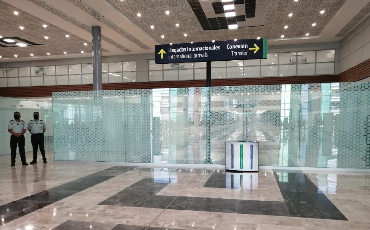 “Está al 100 el aeropuerto, completamente concluido, pueden bajar aviones las 24 horas, despegar y arribar con sistemas modernos de radar, es cuestión de que las lineas aéreas vayan incrementando sus viajes. (…) Entonces está terminado, ya se puede llegar al aeropuerto de cualquier parte de la ciudad, ya pueden llegar millones”, dijo.