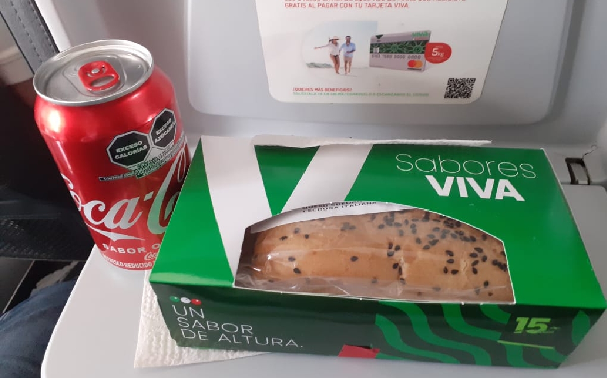 En el primer vuelo de Vivaerobus desde el aeropuerto en Santa Lucía a Monterrey, Nuevo León, la tripulación obsequió a los pasajeros un lunch de cortesía. El refrigerio consistió en un panini clásico con jamón york, queso gouda, queso chedar y lechuga italiana, así como un refresco.