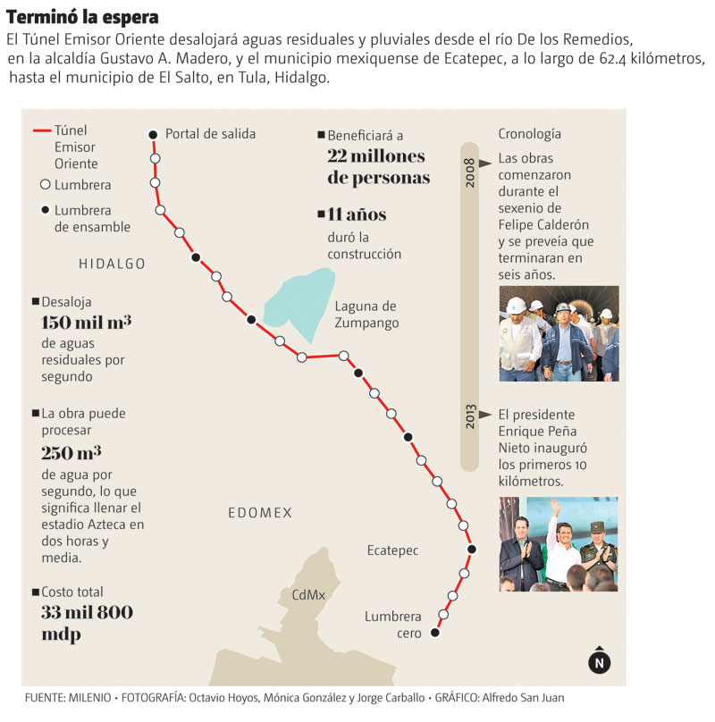 Luego de 11 años de construcción, con el presidente Andrés Manuel López Obrador llegó la inauguración ayer del Túnel Emisor Oriente (TEO), con el que se dará desagüe a aguas de Ciudad de México y su área metropolitana.