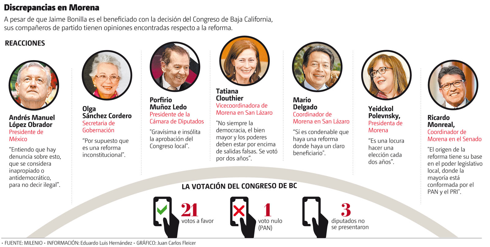 “Entiendo que hay denuncias sobre esto, que se considera inapropiado o antidemocrático para no decir ilegal, pero no olvidemos que fue el Congreso de Baja California, legisladores de todos los partidos, inclusive los que están protestando más, los que votaron la modificación legal, pero, ¿para qué lo mencionamos?”, señaló.