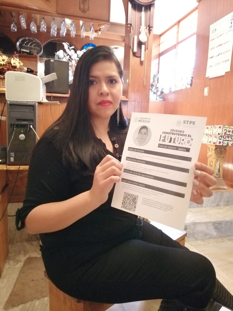 "Yo no era un 'nini', yo soy una egresada que ha tenido conflictos para obtener un trabajo"; aclara la joven, quien no se quedó de brazos cruzados y para subsistir, abrió un pequeño negocio afuera de su casa, temiendo no poder desarrollarse en el plano profesional. Ahora es una de las primeras becarias del programa Jóvenes Construyendo el Futuro, impulsado por el gobierno federal a través de la Secretaría del Trabajo.