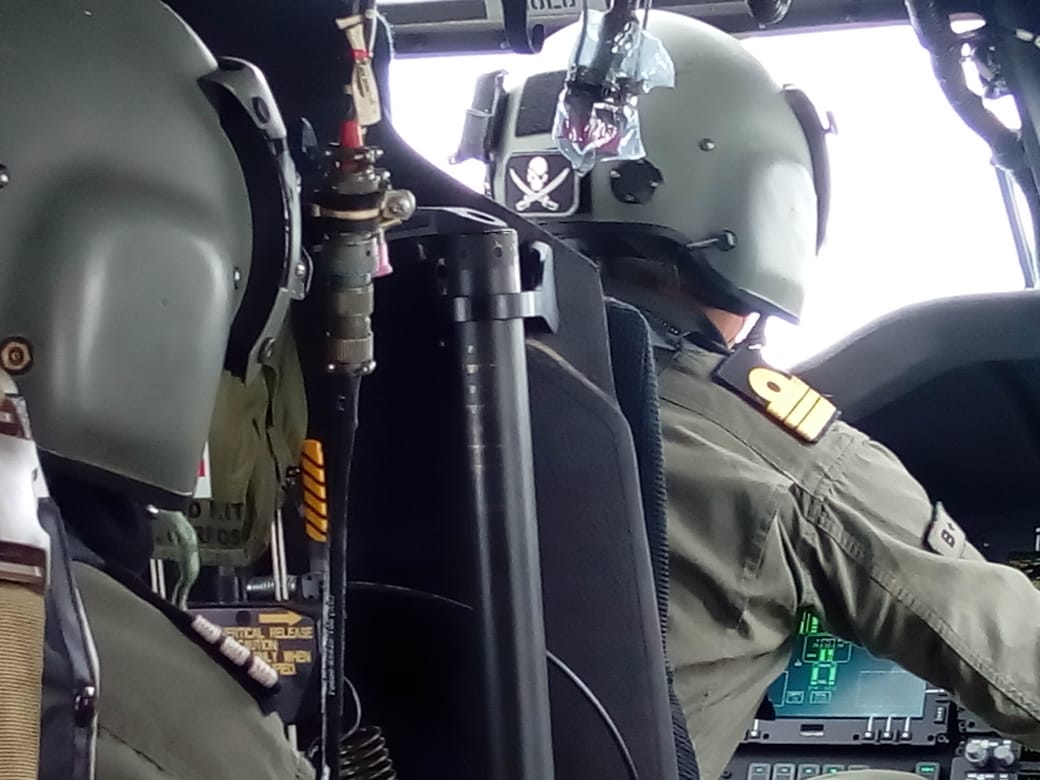 Sin embargo, el clima comenzó a mejorar luego de las 9 de la mañana y las 162 aeronaves de las fuerzas armadas iniciaron los despegues, incluido el Black Hawk en el que MILENIO hizo el sobrevuelo.