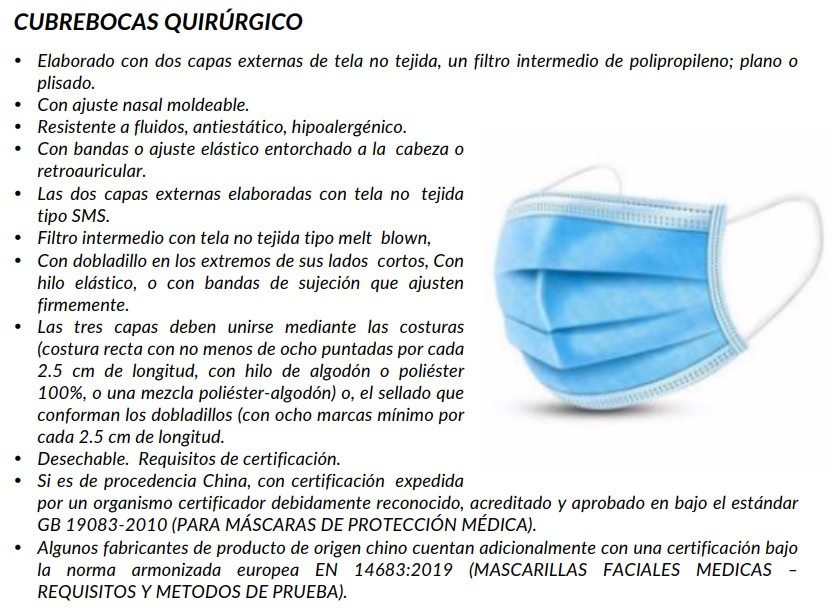 - Cubrebocas quirúrgicos tricapa termosellados, plisados e impermeables