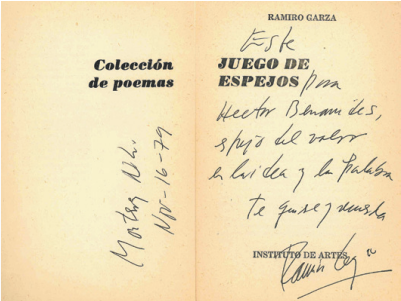 Dedicatoria del libro Colección de Poemas, de Ramiro Garza, publicado en 1979. ESPECIAL