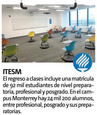 En el campus Monterrey son cerca de 60 aulas con estos nuevos equipamientos y se recibirá el 50 por ciento del aforo en cada aula; hay 300 profesores capacitados en esta modalidad en el campus Monterrey.