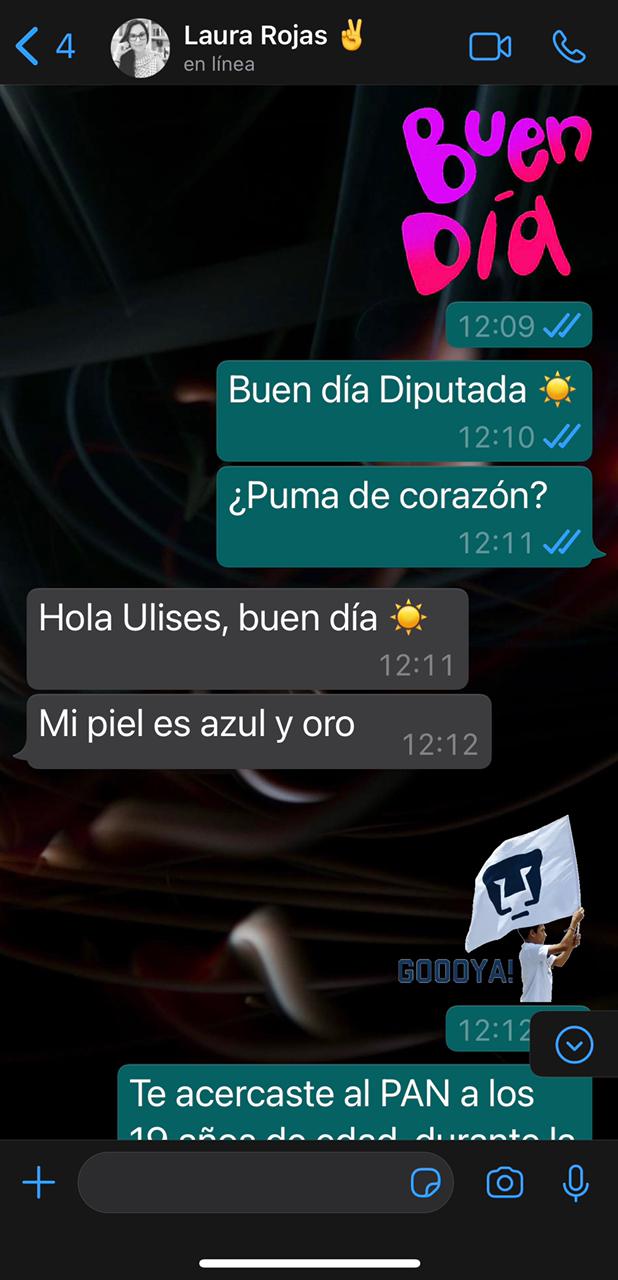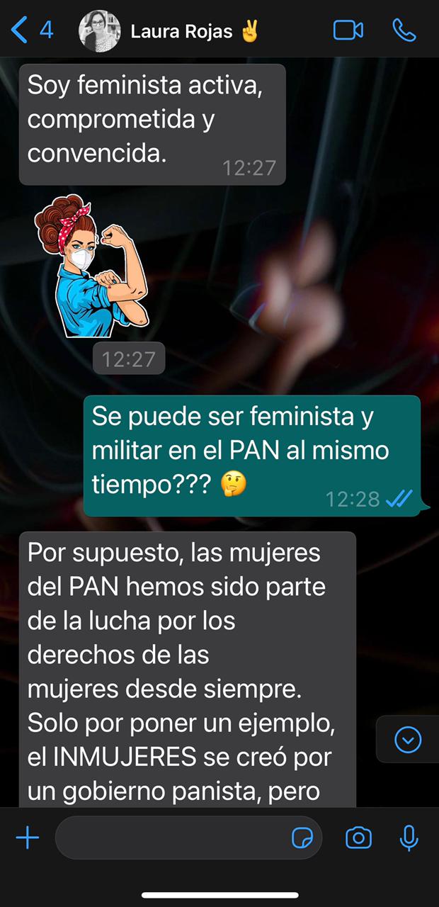 Lleva casi 30 años militando en el PAN y se autodefine como puma y feminista. Laura Rojas ha sido de las pocas mujeres en presidir la Cámara de Diputados desde donde, recuerda, se han impulsado leyes para tratar de mejorar la vida de las mujeres. En este whatsapp nos platica sobre su pasado, sus inicios en política, los retos a los que se enfrentan las mujeres y su visión de la 4T.