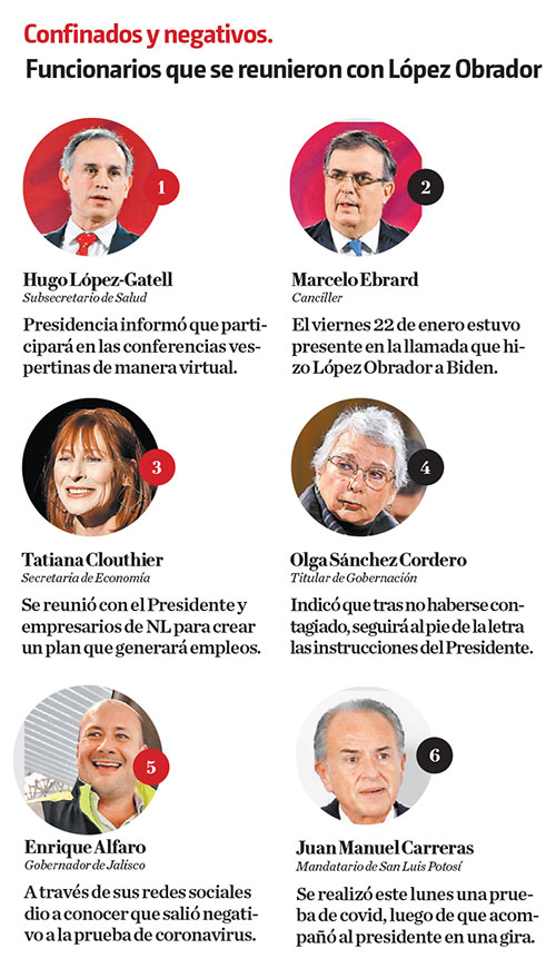 Por su parte, el gobernador de Jalisco, Enrique Alfaro (quien el miércoles 20 de enero sostuvo un encuentro con el mandatario en Palacio) señaló que había resultado negativo.